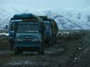 The truckers were friendly and interested in our story, as well as how much money an American makes, are their roads like this in our country, and are Chinese in America discriminated against? I taught them the English road 'trucker', which they liked to repeat, and told them what I knew about trucker life in the U.S. (not much). After an hour of chatter the cab fell silent. It was cold outside but the heat was turned up enough to make me drowsy. Over the next two hours, trains of truckerssometimes 15-20 in a lineheading the opposite direction stopped with windows down to chat with out drivers when they knew each other. It seemed a number were from Linxia county. The heavy snow over the past two days had created a bottleneck, no doubt doing greater damage to the road with trucks now coming through en masse. |